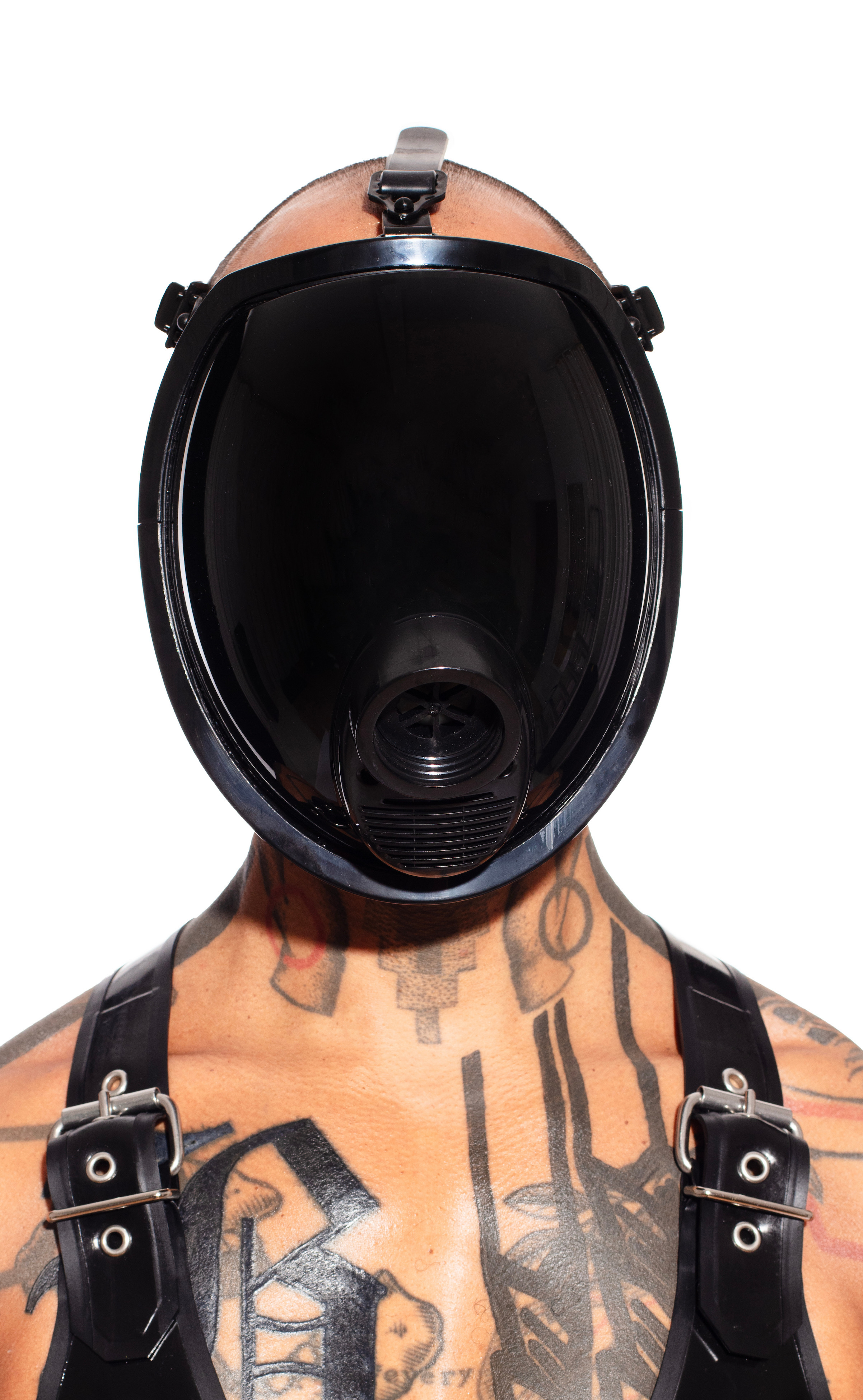 - Front-facing M40 standard gas mask hose connection